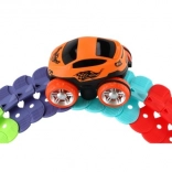 Autíčko, ktoré je súčasťou balenia, svieti a jeho kabína sa dá ľahko meniť medzi oranžovou a modrou, čo pridáva na zábave.