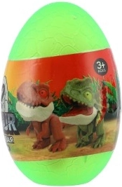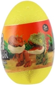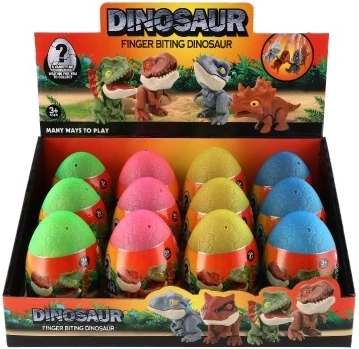Objavte dinosaurové prekvapenie s vajíčkom o veľkosti 10 cm. Každé vajíčko skrýva dinosauriu figúrku, ktorú možno nasadiť na prst, ideálne pre deti od 3 rokov.