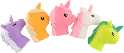 Táto súprava obsahuje päť gumených jednorožcov v rôznych farbách, každý s jedinečným dizajnom a výrazom. Sú vyrobené z kvalitného materiálu, čo zabezpečuje ich trvanlivosť a bezpečnosť pri hre.
