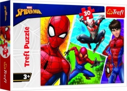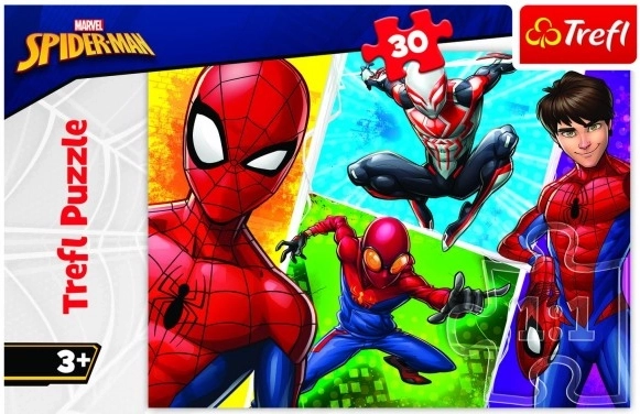 Puzzle obsahuje pestré ilustrácie Spider-Mana a postavy ako Miguel, ideálne pre malých fanúšikov komiksov.