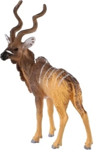 Táto precízne vyrobená plastová figúrka veľkého kudu verne zachytáva charakteristické znaky jednej z najimpozantnejších antilop – dlhé špirálovité rohy, biele pruhy na tele a typické hnedé sfarbenie. Vďaka kvalitnému spracovaniu je vhodná na hravé učenie o zvieratách, školské projekty aj ako štýlová dekorácia.