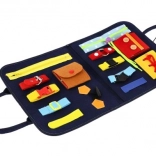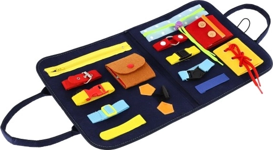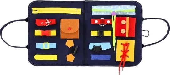 Praktická a zábavná motorická doska z plsti s rôznymi zapínaniami zaistí deťom hodiny objavovania. Vďaka aktivitám ako zipsy, gombíky, pracky a suché zipsy rozvíjajú jemnú motoriku, trpezlivosť aj samostatnosť pri obliekaní. Ideálna na cesty aj domov, ľahko prenosná a odolná.