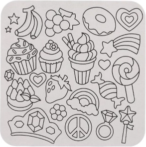 Obsahuje rôzne fólie a nálepky s motívmi ako sú cupcakes a kvety.