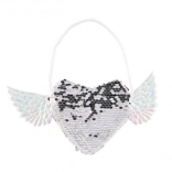 Pridajte svojmu outfitu jedinečný vzhľad s touto kúzelnou kabelkou, ktorá má tvar srdca a krídla po stranách. Meníte farby flitrov podľa svojej nálady - vyberte si medzi elegantnou striebornou alebo hravou ružovo-modrou kombináciou. Kabelka je ideálna pre uloženie drobností, ktoré chcete mať vždy po ruke.