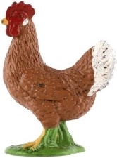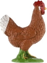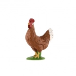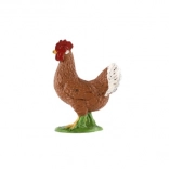 Verne modelované perie, prirodzené hnedé sfarbenie s bielym chvostom a červeným hrebeňom dodávajú figúrke autentický vzhľad skutočnej sliepky.