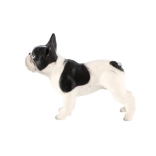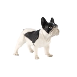 Nápadne verné proporcie, výrazné uši a pozorný pohľad dodávajú figúrke autentický vzhľad francúzskeho buldočka.