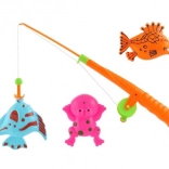 Zábavná magnetická rybárska hra pre deti s plastovým prútom s dĺžkou 34 cm a tromi zvieratkami (2 rybičky a 1 žaba). Podporuje jemnú motoriku, koordináciu oko–ruka aj súťaživú hru s kamarátmi. Farebné prevedenie zaujme na prvý pohľad a zaručí veľa zábavy pre deti od 3 rokov.