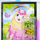Vytvorte si trblietavý výtvor s motívom lamy! Tento kreatívny set obsahuje všetko, čo potrebujete: flitre v 4 farbách, gélové pero na jednoduché naberanie a samolepiaci obrázok. Ideálne pre deti od 6 rokov – zábava, ktorá rozvíja jemnú motoriku a trpezlivosť.