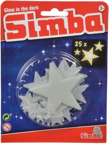 Hviezdy rôznych veľkostí, ktoré po nasvietení svietia v tme. Možno ich nalepiť na stenu, strop alebo nábytok. Súprava obsahuje 25 kusov.