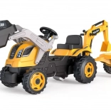 Robustný šliapací traktor pre malých staviteľov ponúka predné rýpadlo, zadnú mechanickú lyžicu a odpojiteľný vozík. Nastaviteľné sedadlo, klaksón a kvalitný plast zaistia pohodlie aj odolnosť pri každej jazde. Rozmery vrátane vozíka 182 × 66 × 44 cm, hmotnosť 8,41 kg.