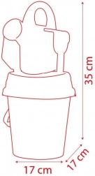 - Kompletná výbava: vedierko 17 cm, hrabličky, lopatka, formička, kanvička