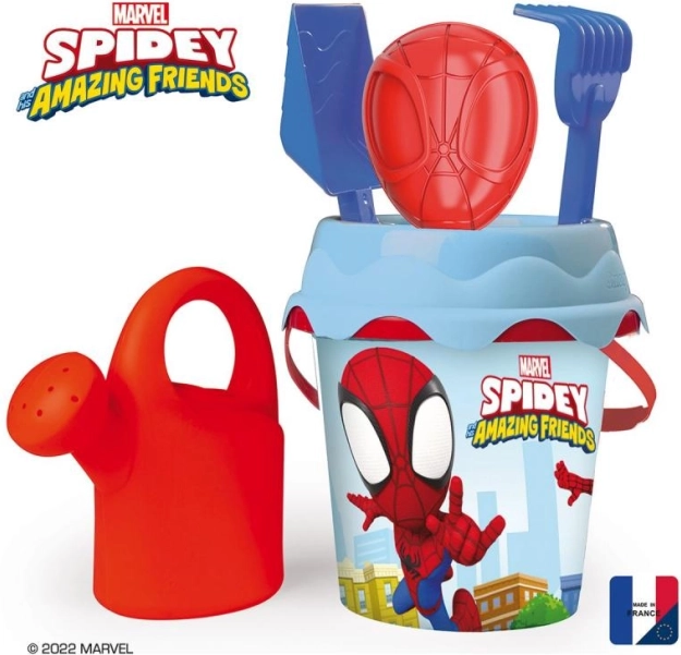 Detská plážová sada s motívom SPIDEY obsahuje vedierko 17 cm, hrabličky, lopatku, formičku a kanvičku. Vďaka technológii IML je potlač odolná proti oderu a zostáva dlho ako nová. Vyrobené vo Francúzsku.