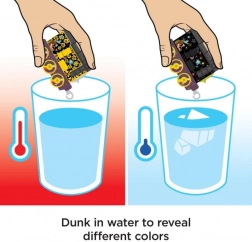 Ponorte mašinku do teplej alebo studenej vody a sledujte okamžitú premenu farieb. Efekt možno opakovať stále dookola a neomrzí.