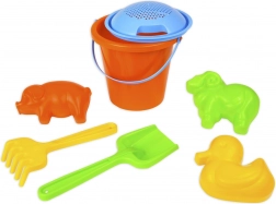 V balení nájdete všetko potrebné: vedierko s priemerom 18 cm (2 l), sitko, lopatku, hrable a 3 formičky. Všetko je navrhnuté tak, aby sa deťom dobre držalo a ľahko používalo, a je vhodné aj pre najmenších od 1 roka.