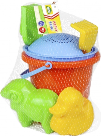 Lena pieskový set 7 dielov pre deti od 1 roka. Vedierko, sitko, lopatka, hrable a 3 formičky. Odolný plast, vyrobené v ČR. Skvelá zábava na pieskovisku.