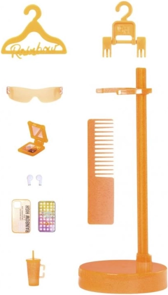Bábika prichádza s množstvom štýlových doplnkov, vrátane hrebeňa, slnečných okuliarov, vešiakov, make-up paletky a nápojového pohárika, čo z nej robí skvelé miesto pre styling a hranie.