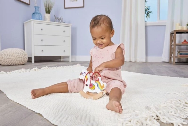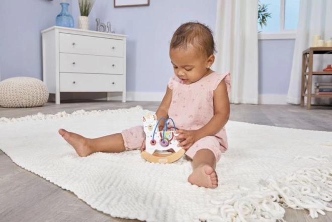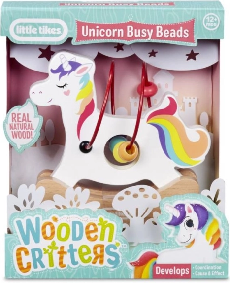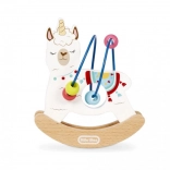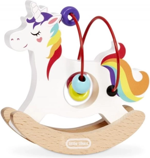 Little Tikes prináša jedinečné drevené hračky, ktoré kombinujú jednoduchosť a kreativitu. Toto hojdacie zvieratko je skvelou voľbou pre batoľatá, ktoré si užijú nielen zábavu, ale i zmysluplný rozvoj. Hračka je vybavená farebným drôtikovým bludiskom s korálkami, ktoré stimulujú detskú predstavivosť a koordináciu.