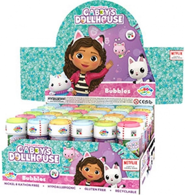 Rozžiarte detský deň s bublifukom GABBY’S DOLLHOUSE. Praktická fľaša s objemom 60 ml sa ľahko drží a vďaka integrovanému fúkadlu deti okamžite začnú tvoriť množstvo trblietavých bublín. Farebné viečko navyše obsahuje zabudovanú mini hru, ktorá zabaví aj na cestách.