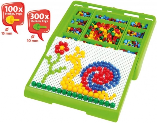 Prenosný kufrík s mozaikou od značky Lena ponúka nespočetné možnosti pre zábavnú a vzdelávaciu hru. Doska, ktorá je súčasťou súpravy, umožňuje kreatívne vkladanie kolíčkov do mozaikových obrazcov, čo podporuje rozvoj fantázie, sústredenie a jemnú motoriku. Súprava obsahuje: