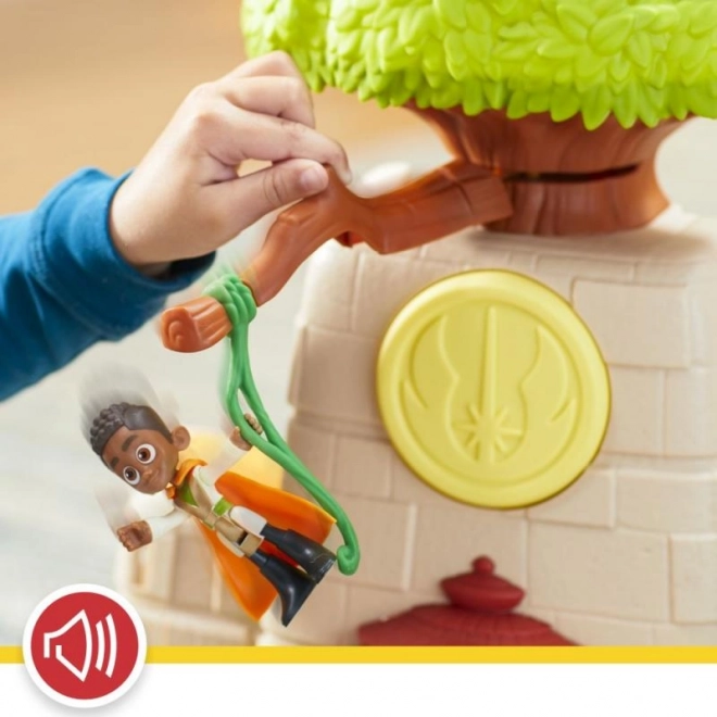 Objavte dobrodružstvo v chráme Tenoo inšpirovanom seriálom STAR WARS: YOUNG JEDI ADVENTURES. Deti môžu trénovať Silu na Force push paneloch, spúšťať sa po lianovej šmykľavke, liezť po zvislej liane a oddychovať v spacích častiach. O autentickú atmosféru sa postarajú svetelné a zvukové efekty.