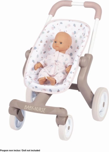 Kočík pre bábiky Smoby Baby Nurse s 360° prednými kolieskami pre ľahké riadenie. Plastový rám kočíka je veľmi ľahký, a preto sa s ním ľahko manipuluje. Vďaka ľahko udržiavateľnému plastu a špeciálnej tkanine sa kočík ľahko čistí: stačí namočiť hubku do trochy vody a dôkladne vyčistiť. Vhodný pre bábiky do 42 cm (bábika nie je súčasťou balenia). Rozmery výrobku (DxŠxV): 50 x 38 x 53 cm.