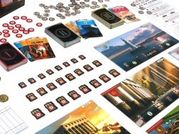 Farebné dosky divov, niekoľko balíčkov kariet, mince, žetóny konfliktov a referenčné prehľady. Všetko s jasnými symbolmi pre rýchle učenie aj plynulú hru.