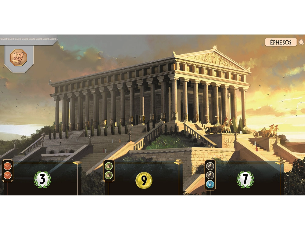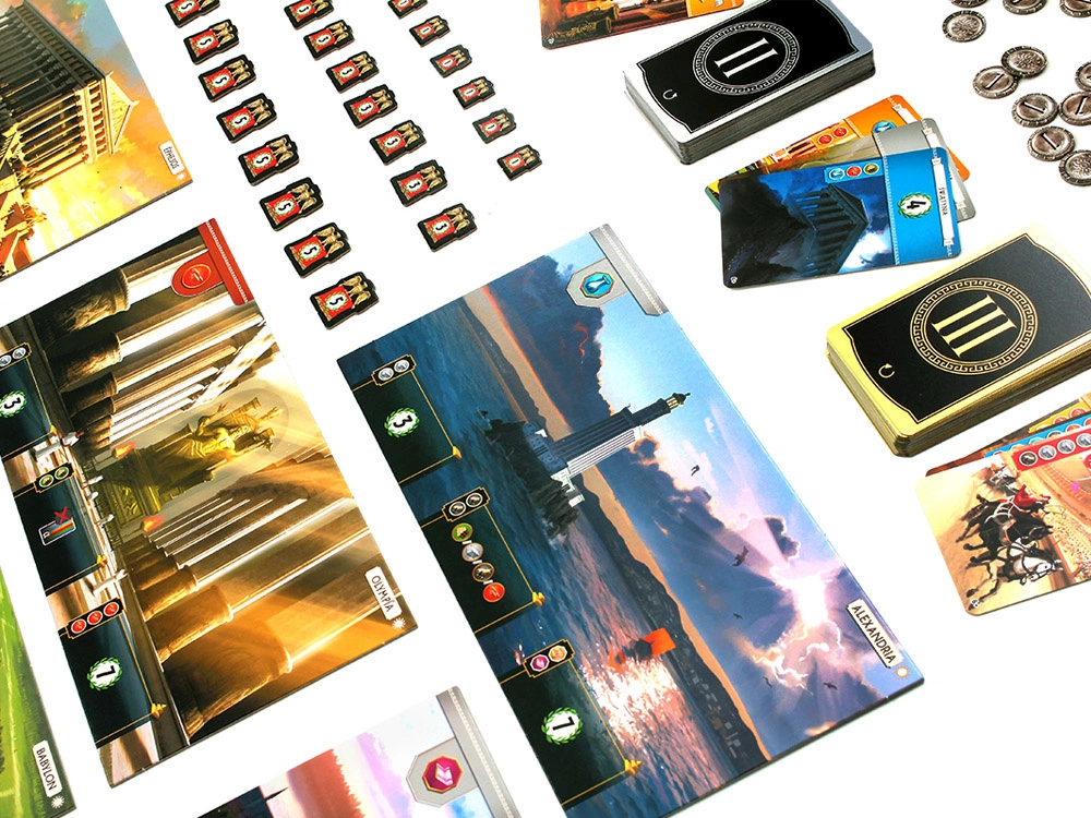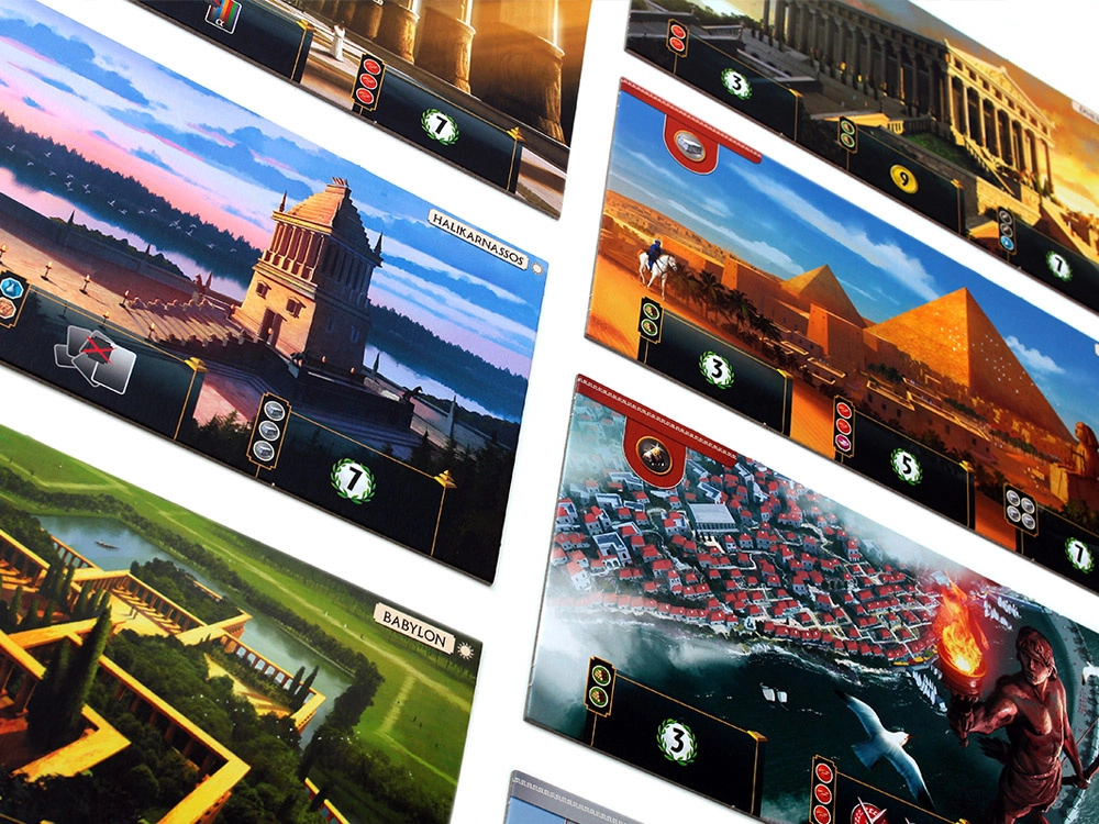 Každý hráč vedie vlastné mesto s jedinečným Divom sveta rozdeleným do niekoľkých stupňov. Ich dokončenie prináša silné bonusy, špeciálne efekty aj body navyše. Vďaka jasnej ikonografii, prehľadným kartám a pevným herným plánom sa hra učí ľahko a plynie svižne.