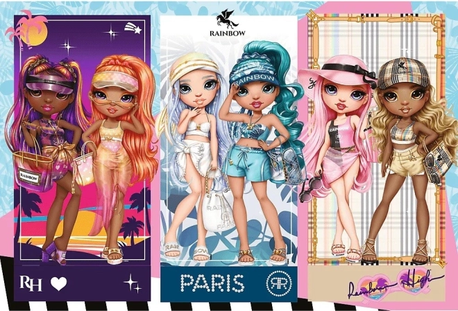 Tieto farebné puzzle s motívom obľúbených bábik RAINBOW HIGH potešia deti aj zberateľov. Vďaka 100 precízne vyrezaným dielikom prinášajú príjemnú výzvu a krásny výsledok vo veľkosti 410 × 275 mm, ktorý si môžete vystaviť.