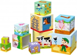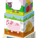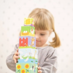 Objavujte svet na farme a učte sa hrou. Farebné ilustrácie zvieratiek, čísla a scény z každodenného života na hospodárstve deti zaujmú a prirodzene rozvíjajú vnímanie rozmerov, predstavivosť aj pamäť. Z kociek ľahko postavíte stabilnú vežu až 86 cm, ohrady pre zvieratká alebo mosty – fantázii sa medze nekladú.