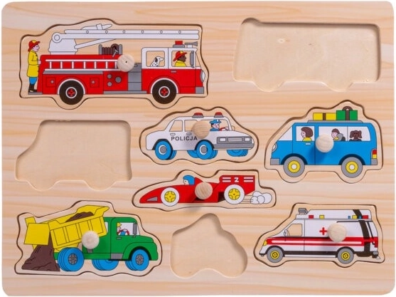 Objavte zábavnú drevenú vkladačku s úchytmi s motívom vozidiel, ktorá deťom pomôže rozvíjať jemnú motoriku, poznávacie zručnosti a rozlišovanie tvarov a farieb. Deväť pevných dielikov s pohodlnými drevenými úchytmi sa ľahko uchopuje a vkladá na správne miesta – ideálne pre malých milovníkov áut, vlakov i ďalších strojov.