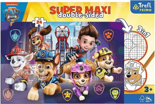Veľká obojstranná skladačka s motívom PAW PATROL: THE MOVIE prináša 3 zábavy v jednom: skladanie 24 veľkých dielikov, maľovanku a hravú kresliacu aktivitu na zadnej strane. Ideálne pre deti od 3 rokov – rozvíja jemnú motoriku, logické myslenie a kreativitu.