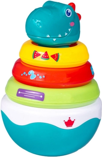 Milá dinosauří hlavička motivuje deti k hre, rozvíja fantáziu a robí z pyramídy obľúbenú hračku každého malého objaviteľa.