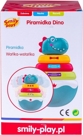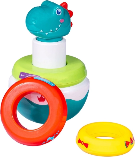 Farebná skladacia pyramída s motívom dinosaura kombinuje zábavu a učenie. Deti si precvičia jemnú motoriku, koordinačné zručnosti a pochopia pojmy väčší–menší. Stabilná „váľka-vstaňka“ základňa z kvalitného plastu podporuje bezpečné hranie a opakované stavaníe.