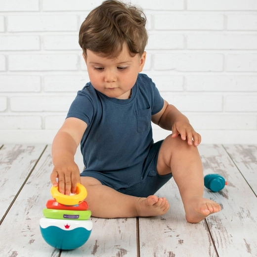 Vďaka výrazným farbám a rozdielnym veľkostiam krúžkov sa deti učia rozlišovať farby aj veľkosti, rozvíjajú logické myslenie a priestorovú predstavivosť. Odolné prevedenie z kvalitného plastu zaručuje dlhú životnosť a bezpečné každodenné používanie.