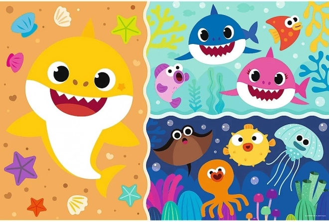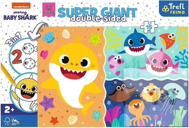 Obrie puzzle Baby Shark z radu Trefl Primo prináša až tri rôzne zábavné aktivity v jednom. Táto veľká skladačka sa skladá z 15 dielikov, ktoré sú navrhnuté s ohľadom na malé deti a ich rozvoj jemnej motoriky a vizuálneho vnímania. Jednoduché a farebné grafické spracovanie s veľkými postavičkami podnecuje k spoznávaniu a samostatnému skladaniu.