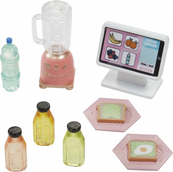Obsahuje fľaše s džúsmi a mixér, čo posúva hru na ďalšiu úroveň a pridáva realistický prvok do detského sveta.