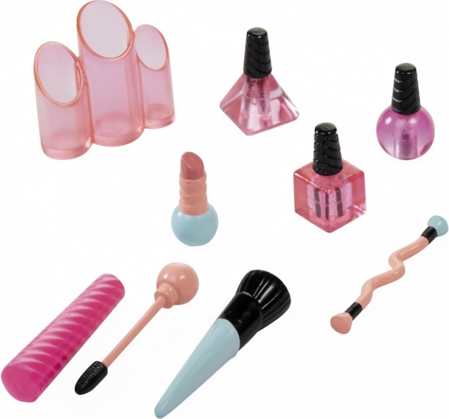 - Kadernícky salón: Nastaviteľné salónne kreslo, podsvietené zrkadlo, vlasové doplnky a nástroje pre úpravu vašich obľúbených módnych bábik.