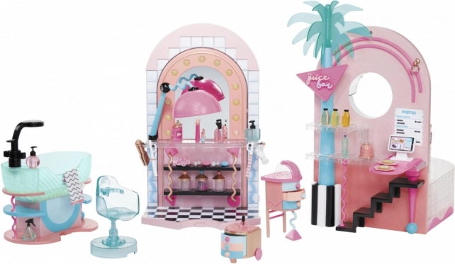 L.O.L. Surprise Salón a Spa je perfektný herný set pre milovníkov módnych bábik a kolekcií. Ponúka množstvo funkcií vrátane vodopádu, staníc na úpravu vlasov a nechtov a dokonca aj bar s čerstvými šťavami!