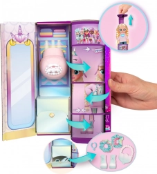 Rozbaľovanie je zábava! Otočte špeciálny tubus – originálnu krabičku, ktorá slúži ako štýlová skriňa – a objavte viac než 9 doplnkov: časti outfitu, kabelku, čelenku alebo čiapku, párové topánky s ponožkami a BFF náhrdelník. Každý detail je navrhnutý tak, aby podporil fantáziu a rozvíjal zmysel pre štýl.