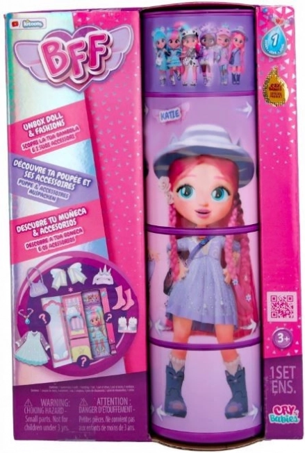 Spoznajte nových najlepších priateľov BFF! Vaše obľúbené postavičky z filmu Cry Babies Kúzelné slzy teraz vyrástli a sú z nich tínedžerky! Majú 13 rokov a čaká ich množstvo dobrodružstiev. V kolekcii je 6 bábik, ktoré môžete zbierať, a každá z nich je oblečená do moderného oblečenia podľa najnovšieho módneho výkriku. Sú 15 cm vysoké, majú farebné vlasy, krištáľové oči a plne pohyblivé telo. Ktorú najlepšiu kamarátku si vyberieš? Otočte tubusom a zistite to! Rozbaľte a objavte ich šatník spolu s viac ako 9 prekvapeniami: 2 kúsky oblečenia, tašku, čelenku alebo čiapku, pár zladených topánok s ponožkami a náhrdelník! Bábiky BFF majú hodvábne nylonové vlasy a naozaj módne oblečenie! Každá bábika je zabalená v jedinečnej krabici, ktorá je zároveň ich šatníkom! Otáčaním dielikov tubusu objavujte rôzne pózy, ktoré môže vaša najlepšia kamarátka zaujať!