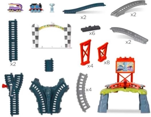 Deti si s touto sadou vláčikov a koľají s tlačeným vláčikom od Fisher-Price môžu zopakovať veľkolepé preteky o Sodorský pohár zo seriálu Tom a priatelia! Deti môžu postaviť odlievané lokomotívy Tomáša a Cana k štartovnej bráne a potiahnuť za páku, aby obaja kamaráti vyrazili cez deliacu zákrutu k cieľovej čiare. Táto sada trate je plná vzrušujúcich zákrut, vďaka ktorým bude toto priateľské súperenie ešte zábavnejšie. Kto dorazí do cieľa ako prvý a odnesie si domov trofej?