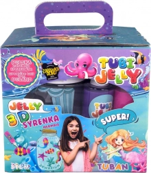 S touto zábavnou sadou TUBAN TUBI JELLY vytvoria deti aj začiatočníci ľahko elastické 3D gélové figúrky. Šesť žiarivých farieb vo fľaštičkách s presnou špičkou uľahčuje kreslenie kontúr aj vyplňovanie tvarov. Hotové výtvory stačí na pár minút ponoriť do aktivátora a potom ich môžete vystaviť v 1 l akváriu s vodnými kryštálmi – ideálne na morské scény s motívom morskej víly.