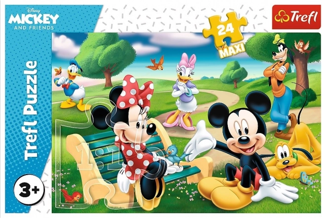 Detské puzzle s motívom MICKEY MOUSE a priatelia obsahujú 24 MAXI dielikov, ideálne pre malých staviteľov. Po zložení vytvoria obrázok o rozmere 60 × 40 cm. Vyrobené z kvalitných a ekologických materiálov s kalandrovaným, lesklejším papierom pre ľahšie skladanie. Vyrobené v Poľsku.