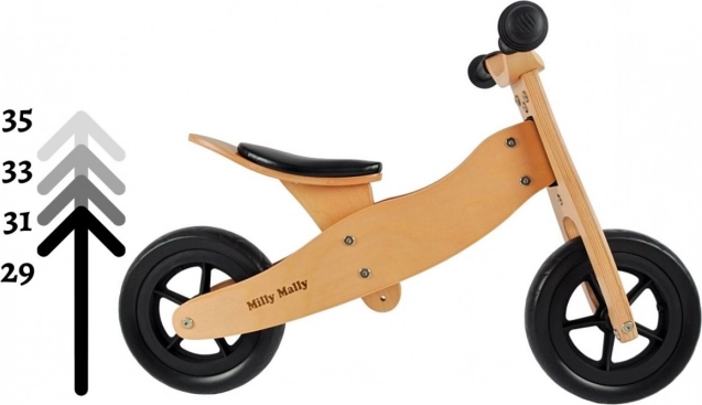 Odrážadlo Look Natural od značky Milly Mally je navrhnuté tak, aby pomáhalo deťom rozvíjať rovnováhu a koordináciu počas hry vonku. Jeho drevený rám zaisťuje dlhú životnosť a prirodzenú estetiku, čo osloví rodičov aj deti. Vďaka možnosti nastavenia výšky sedla od 29 do 35 cm rastie s dieťaťom a prispôsobuje sa jeho potrebám.