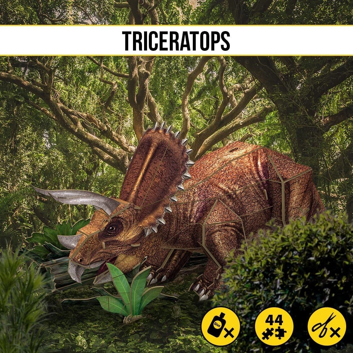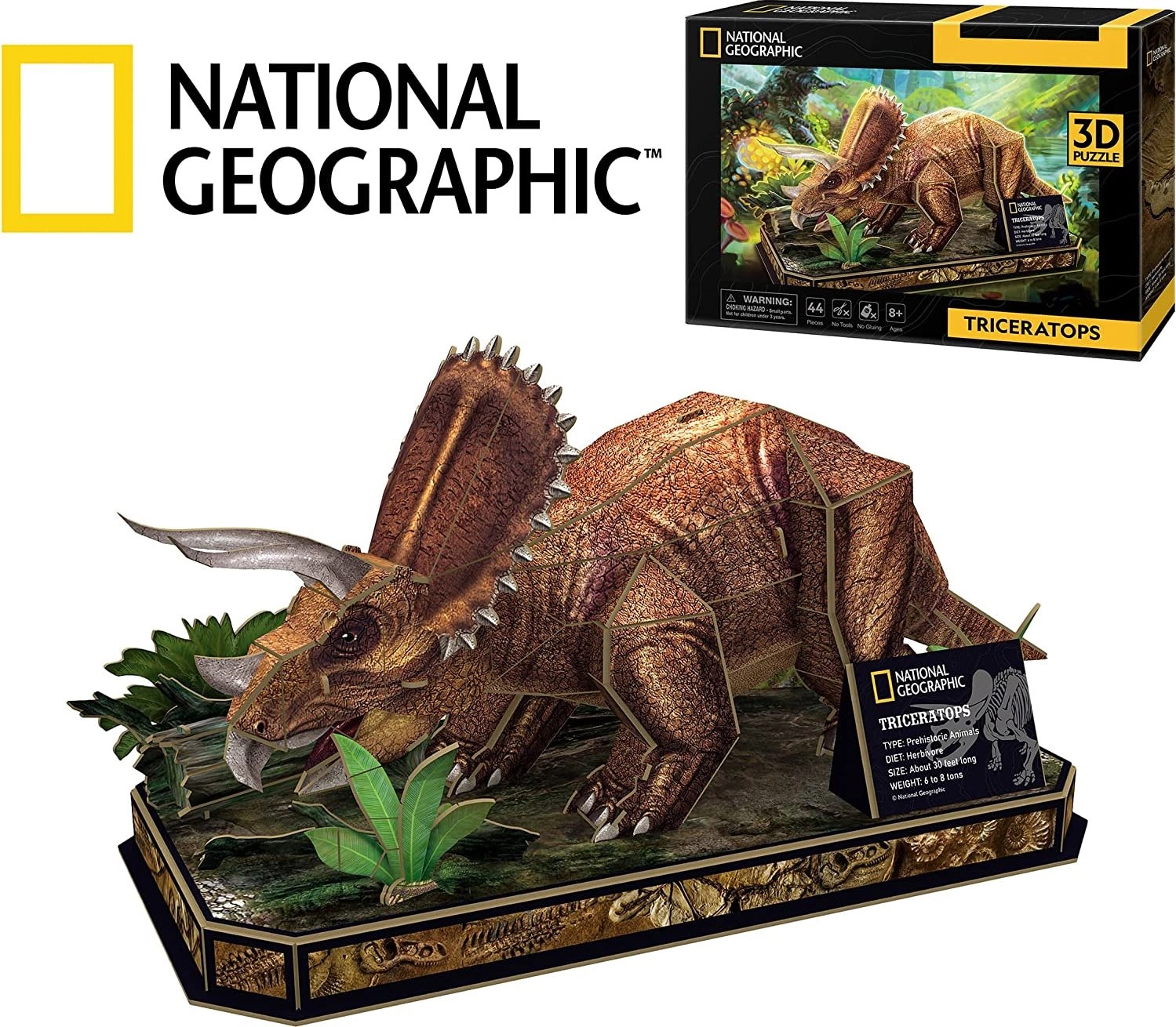Objavte zábavný a poučný svet dinosaurov s modelom Triceratopsa od National Geographic. Tento 3D puzzle set obsahuje 44 dielikov z predrezaného papiera a penovej dosky, ktoré sú ľahké, bezpečné a realistické. Súčasťou je ilustrovaný návod, stojan a štítok s názvom, takže si môžete vytvoriť vlastnú múzejnú expozíciu.