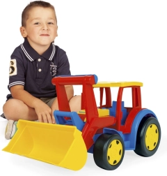 Gigant Traktor s Lopátkou o dĺžke 60 cm je masívna hračka s realistickým vzhľadom, ktorá sa osvedčí ako skvelý nástroj pre stavanie, naberanie a presúvanie.