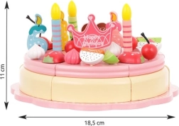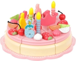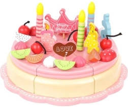 Drevená torta umožňuje zdobenie podľa vlastných predstáv s použitím dekoratívnych prvkov. Trénuje jemnú motoriku a rozvíja kreativitu. Všetky časti sú bezpečne prepojené magnetmi.