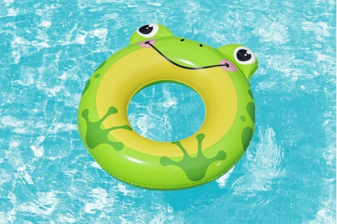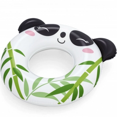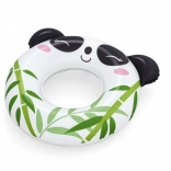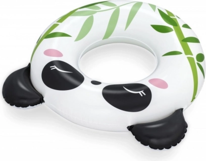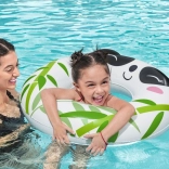 Bielo‑čierny kruh s potlačou bambusu a 3D uškami motivuje deti k pohybu vo vode a spríjemní prvé plavecké pokusy.