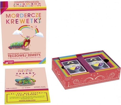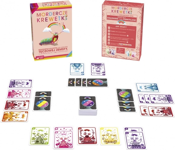 Vstúpte do sveta podivuhodných kreviet a farebných akvárií! „Mordercze Krewetki“ je rýchla a chytľavá kartová hra, v ktorej hráči zbierajú sady kariet podľa farieb, rozširujú svoje akvárium a šikovne kradnú súperom. Vďaka jednoduchým pravidlám, rýchlej hernej dobe okolo 10 minút a farebným ilustráciám si ju užije celá rodina aj partia priateľov. Od autorov Exploding Kittens prináša táto hra napätie, stratégiu aj štipku blafovania v každom ťahu.