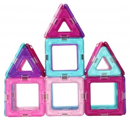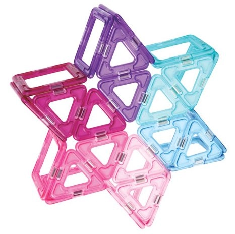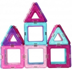 Pastelová edícia obľúbenej stavebnice prináša 18 štvorcov a 12 trojuholníkov v polopriehľadných farbách (ružová, fialová, tyrkysová, modrá). Diely sa spájajú spoľahlivými magnetmi po hranách, takže deti ľahko vytvoria hviezdy, domčeky, srdcia aj vežičky. Stavebnica je ideálna na prvé konštrukčné pokusy a rozvoj priestorovej predstavivosti.